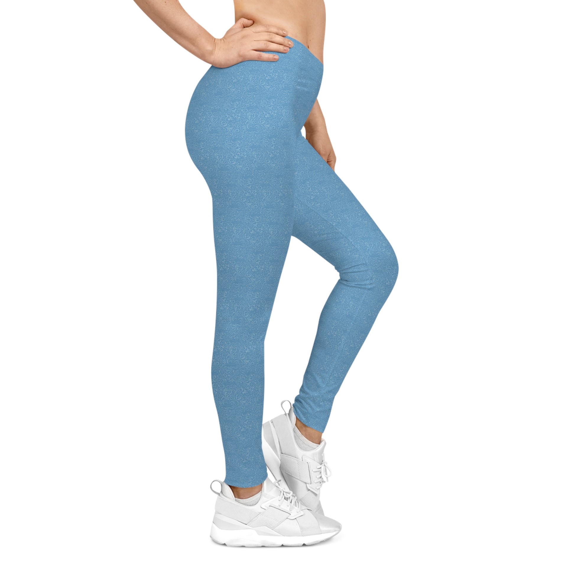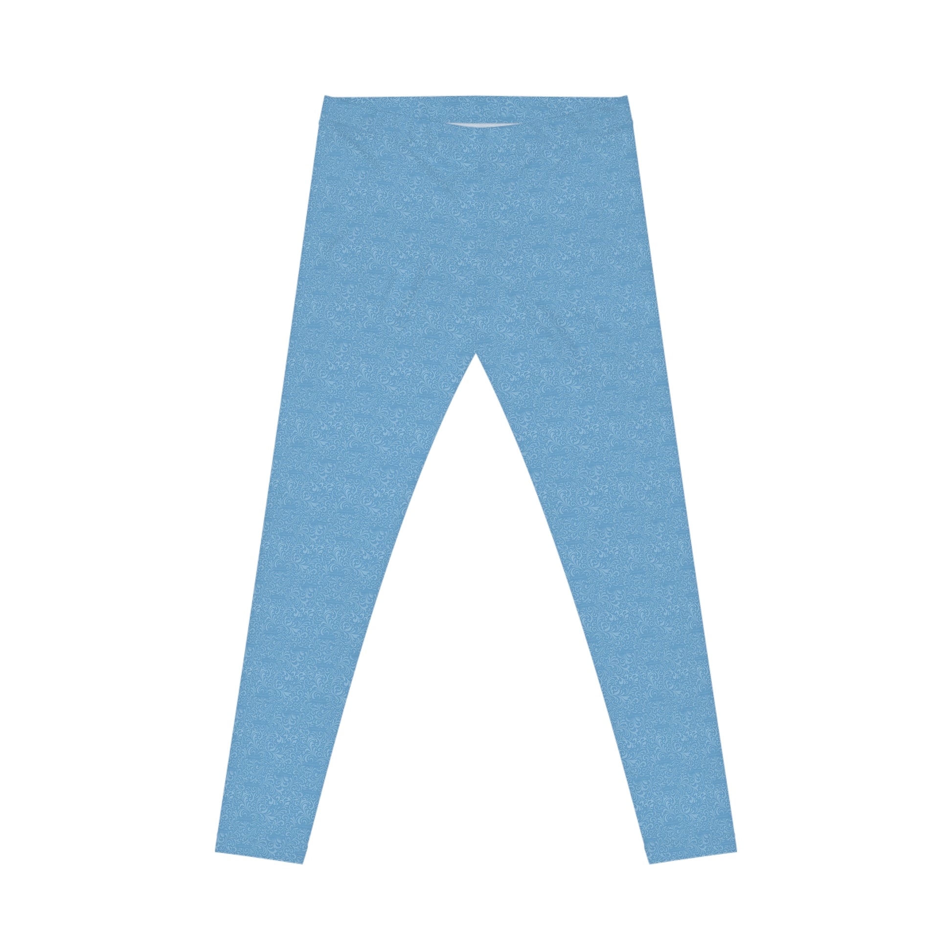 Blue Floral All-Over-Print Leggings — Women's Casual Stretch Activewear