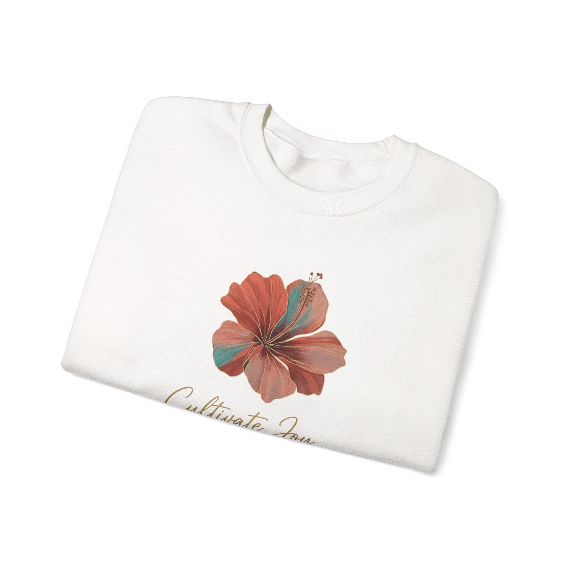 Embrace comfort and style with this unisex heavy blend crewneck sweatshirt, designed to offer a cozy, relaxed vibe perfect for everyday wear. The cheerful floral design with the phrase 'Cultivate Joy' transforms this wardrobe staple into a source of inspiration, making it ideal for boosting spirits during casual outings or cozy nights in. This sweatshirt suits anyone looking to blend comfort with a message of positivity, making it a thoughtful gift for friends or family during birthdays, holidays, or even as a pick-me-up for someone special. Its versatile design means it pairs beautifully with jeans, leggings, or joggers, making it a go-to choice for various occasions including lounging at home, running errands, or enjoying casual gatherings.