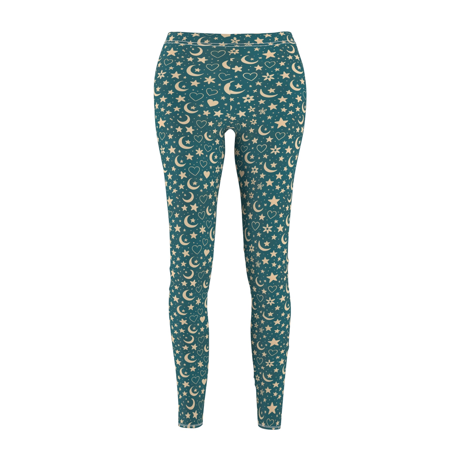 Hipnowaves Celestial Pattern Women's Leggings, Comfortable Yoga Pants, Star & Moon Print, Casual Wear, Gift for Her, Festival Attire, Everyday Comfort